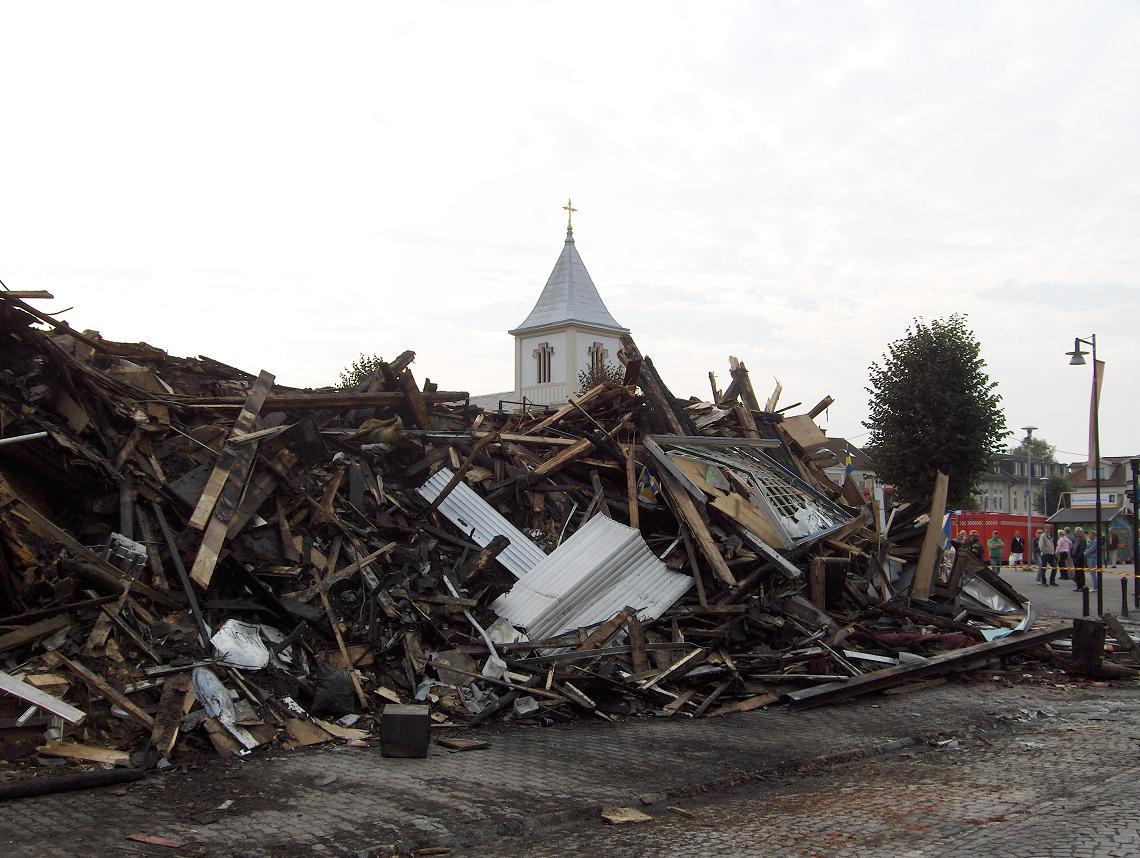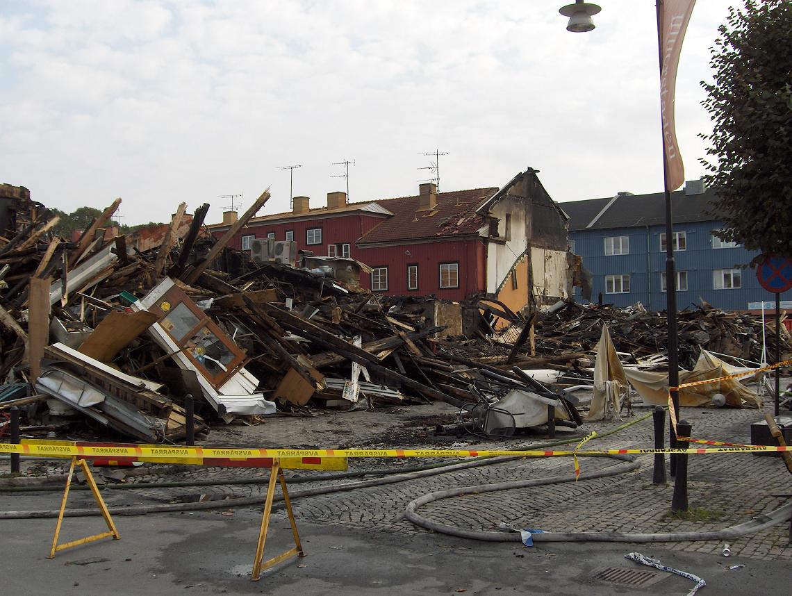 A fire destroyed some old houses in Kungsbacka (Pictures taken