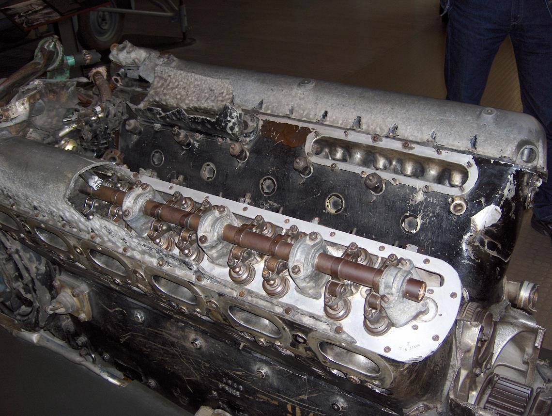 The engine from the plane that Hess flew to England with, notice 4-valves per