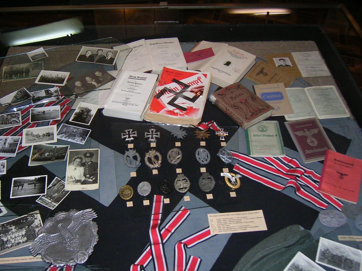 Tyska medaljer, foton och böcker från andra världskriget.