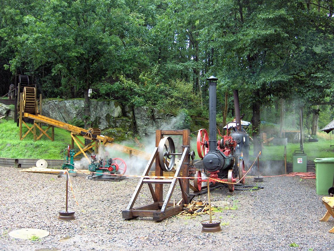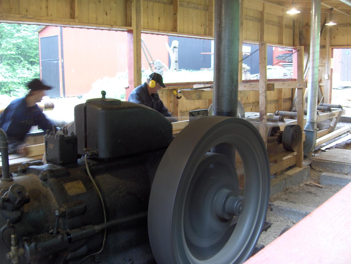Rejäl tändkulemotor som driver en såg, gott ljud onekligen men förstås